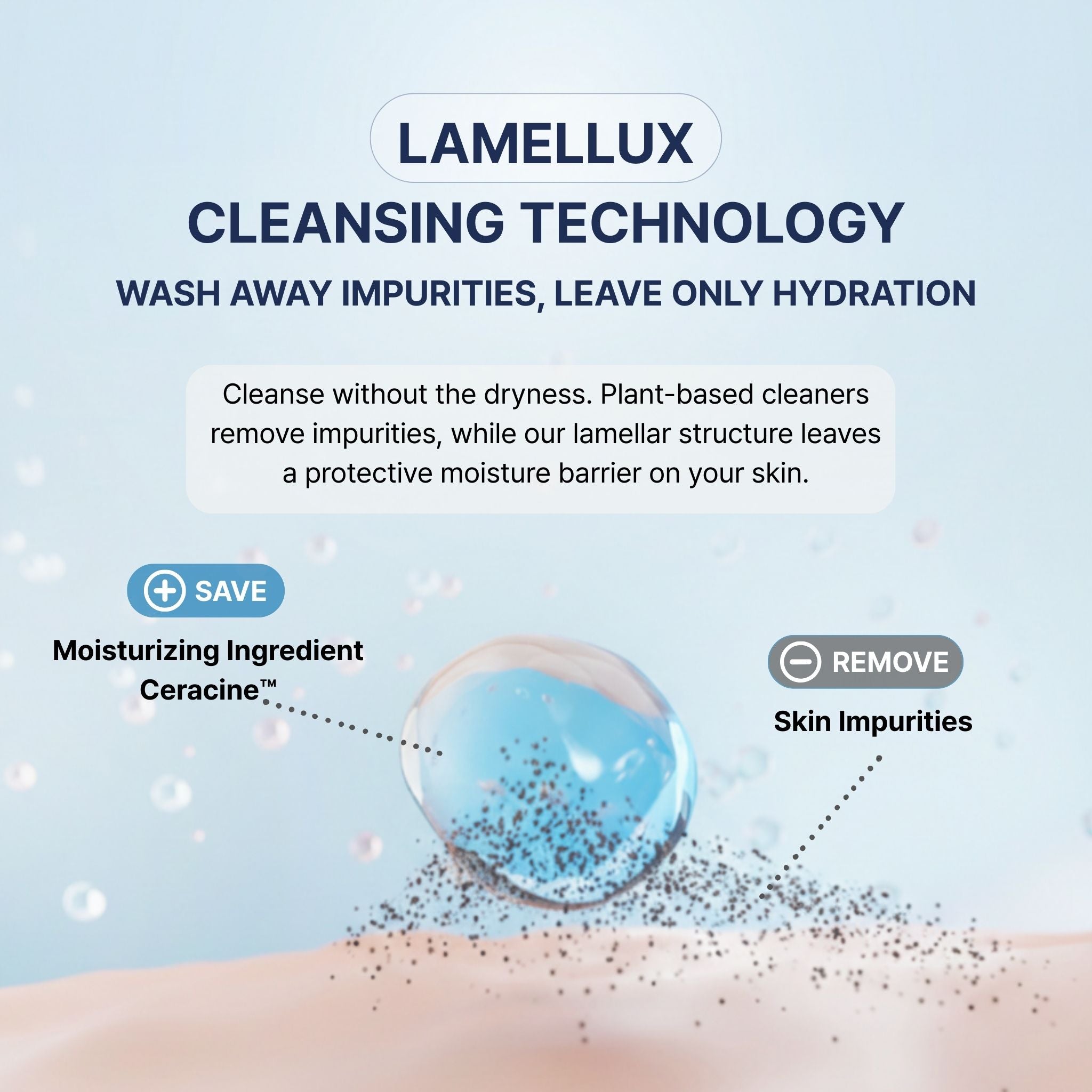 - LAMELLUX CLEANSING TECHNOLOGY - A lamellar structure cleanses gently while leaving a protective moisture layer on skin.